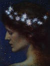 all natural and personal things which symbolise the feminine As we move to embrace the era of personal and social wholeness, the feminine is coming to be seen in various retellings of the Grail myth not just in terms of its supportive role in the masculine quest, but in a counterbalancing and complementary development the masculine is increasingly understood in its supportive role in the feminine quest for self-realisation. Marion Zimmer Bradley presents an instance of this in the development of Arthur's half sister, Morgaine, the central character of her magnificent Arthurian novel, The Mists of Avalon (1983). Although in many Arthurian sources Avalon is identified with the Christian island of Glastonbury, Bradley with considerable insight maintains a distinction between the two as a reflection of the distinction between the Grail as a Christian relic and its broader significance as a symbol of the divine union of masculine and feminine. The Grail rightly returns at the end of the tale to its true origin, Avalon. Glastonbury, on the other hand, represents the superficial narrowness of what William Blake would derogatively call the "Negation" of reasoned belief, whose exclusive masculinity, embodied in the authority of the priesthood and later in the Protestant Church, suppresses its feminine unconscious, the Goddess who is not approachable through detached dogma but can only be intuitively known as the archetype of a deep inner wisdom, a lunar consciousness attuned to Nature and soul. The latter is personified in the Grail mythology by the Lady of the Lake, who in Celtic myth is an Otherworldly guide and teacher of Arthur and his court. It is this particular facet of the Goddess which is evoked in the last of a series of four Dreams (three, including the one recounted above, spent with Diana and a fourth with one of her sons). In this fourth Dream, I was taking care of Prince Harry, who was still feeling very fragile, emotionally vulnerable and distraught after the loss of his mother, to whom, as I could feel in the Dream, he had been extremely close. In the Dream, I had been 'given' the task of guiding him protectively on the way to school, and as we walked down a long, winding roadway, we were watched from the roadside by a large crowd of folk, as if we were acting out a kind of ritual procession. In my hand I carried what I knew to be Princess Diana's silver tiara, which was partially broken, and was shaped like a crescent Moon. In the Dream I was wondering what to do with the tiara - who to give it to or where to take it - since I knew it was not for me to wear or own. But I could find no-one to hand it over to and the more I mused over it, the more it seemed 'right' that it belonged to no-one in particular; furthermore, it was obviously no longer something to be worn, but rather had taken on another significance. In the Dream I paused along the way and examined the tiara more closely. It was made entirely of tiny diamonds all intricately woven together. Reflecting on this later, I saw in a trance vision of this diamond Moon-web the tiny seed-souls, or divine sparks of the countless folk of Earth, all of whom were contributing to the tiara, just as in the Hindu Net of Indra each gem reflects and is connected to all the others. It seemed in the vision that the seed-souls were embryonic forms of an emerging lunar consciousness, organic and holistic, symbolized by the Moon-crescent shape of the tiara, and I was again reminded of Diana as the Greek Artemis, twin sister of the solar Logos of Apollo and Goddess of lunar light, which symbolizes in the Dream the emerging dominance of Eros as the feminine principle of interwoven relatedness, respect for life and harmony with Nature. As I had done after I had my first deathwalking Dream of Diana, I consulted the Arthurian Tarot and drew forth, not surprisingly, the Moon card. In this beautiful painting are depicted two dark cylindrical towers, facing each other across a stream. Rising over the hills beyond, a full Moon encloses the embryo of a child, curled, like the Child at the end of 2001: A Space Odyssey, as though asleep in a Cosmic womb. In the foreground, a solitary Salmon, symbol of the most ancient Druidic wisdom, strives to leap the weir in the foreground. This card symbolizes the creative passivity of waiting, the kairos time of gestation before the Grail winners, Perceval and Galahad, reveal themselves to the World. Perceval, somewhat like Prince Harry, was raised by his mother, sheltered from the knowledge of aggressive, traditionally masculine skills, hence he has a strong and sensitive feminine side. Galahad, a parallel perhaps to Prince William, was raised in seclusion from the courtly realm of Camelot and was similarly a gentle, introspective and reverent soul. Launcelot, caught as was Prince Charles between the love of two women, Elaine, the suffering and devoted mother of his child, and Guinevere, another man's wife for whose adulterous love he forsook Elaine, just as Charles abandoned Diana, is raised by the Lady of the Lake, and as a flawed and fallen hero, is worldly wise in the ways of war and courtly traditions. Wonder again at how our Celtic myths resonate and abound in this great contemporary archetypal drama! Ironically, it is Diana who, after being
