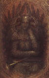 of a distant ideal representing inner wholeness and oneness with the divine. The link between Joseph of Arimathea, the Grail and an early Christian community at Glastonbury exists in a work written in about 1200 by Robert de Boron, A French knight. Here the Grail as a dish or vessel from which Christ ate the Passover feast is connected with a bleeding lance, which several early writers identify as the lance which pierced Christ's side on the Cross. Several elements remain constant in the myth: the Wounded King, who has been stricken with his own sword or lance, his realm, the Waste Land, which has been rendered infertile through the wounding of the King; the Question which must be asked by the hero in order to heal the King and his realm, and the hardship and suffering which must be overcome in the search for the Grail. An exploration of the Grail myth from the perspective of the alchemical archetype of the Wounded Healer, which involves the repeated association of the Grail with the shedding of blood, can aid in an appreciation of the significance of the Grail as a uniting and healing symbol. The form of the Grail itself varies throughout different texts. It may be a dish, a cup, a stone or a jewel. In the strikingly alchemical Grail text, Wolfram's German Parzifal, written in 1207, the Grail is not a vessel but rather a pure stone exiled from Paradise which is imaged as an emerald, one of the many symbols of the Philosophers' Stone, which Jung in his elaborate studies of alchemy equates symbolically with the divine centre of the psyche, the Self. In Parzifal the Grail stone imparts life to the Phoenix - another symbol of the Stone - (4) and its ability to cure sickness is the key to understanding the significance of the Grail's power to heal. Chretien de Troyes' 12th century French text, Perceval:The Story of the Grail, is the first Arthurian tale in which the Grail, the lance, the Wounded Healer and the Grail Castle appear, and initially they are devoid of specifically Christian reference. In the tale, the newly knighted 'Holy Fool' Perceval arrives at the castle of a wounded nobleman, the Fisher King, who gives him a golden sword, which symbolizes the innocence of an immature self as yet unfallen into inner division. In the house of the Wounded King, Perceval witnesses a strange procession consisting of a white lance that bleeds, a girl carrying a golden "grail", followed by a girl carrying a silver plate. That the Grail is always carried by a girl in the Arthurian tales implies the necessity of the feminine as the mediatrix of the Grail mystery. Perceval desires to understand these symbols and is determined to discover why the lance bleeds and where the Grail belongs. As indicative of his deep instinct for the uniting of the opposites, he repeatedly contemplates and encounters the union of red and white (a theme of my Dream) - alchemical symbols of Mercurius as the uniting of masculine and feminine, spirit and matter in the androgynous Self - and in one moving scene encounters a wounded bird and becomes lost in the vision of its blood on the snow. Meanwhile, Arthur's nephew Gawain also goes in search of the Bleeding Lance, and comes to the Grail castle but cannot mend the Broken Sword of the Wounded King. The King tells Gawain that he will only be told the secret meaning of the Grail and the lance if he is "worthy to know such things". He tells Gawain: "If you can mend this blade and make the pieces join together so that the sword is whole again, you'll be able to know the truth and significance of . . . the Grail and the lance. . . ." Gawain, however, repeatedly fails to mend the sword and so never attains the uniting vision of the Grail. His failure to achieve healing knowledge is evident in his lack of understanding of the strongly alchemical vision that comes to him. In this vision the lance bleeds into a silver vase which is called "the vessel" as synonymous with the alchemical bath of transformation. Chretien describes the vision as follows: "But no matter how much it bled, the vase would not be filled, for the blood passed through a large and splendid pipe of dazzling green emerald into a channel of gold, which . . . flowed out of the hall - but he could not see where to" (5). Again, there is a striking resonance with my own Dream, and perhaps an implied warning; in the Dream, the spiralling blood was escaping, flowing down the bath plug hole, perhaps symbolizing its return to the subterranean streams of the unconscious, hence the failure to integrate its significance consciously. Gawain's lack of understanding of this vision, evident in his blindness to the ultimate goal of the vase's contents , mirrors his failure to mend the sword, his failure, that is, to heal the division or 'dis-ease' within himself, hence to help heal the Wasteland. As for the similar theme and complex myth that is emerging from Diana's life and death - and it is one on which several other Arthurian and Greek goddess figures play key roles - it is perhaps too early to fully appreciate that yet, but this tragedy has touched many on the level which only an archetypal drama can, and a myth of simultaneous wounding and healing seems to be distilling. Part of our Celtic mythical heritage is the prophecy that King Arthur will return; this longing for a wise and compassionate ruler and redeemer of our wounded land is buried deep within our psyche, and resonates with the Christian hope for the return of Christ. But as Jung soberly foretold, the age of godlike redeemers has ended; the Aquarian archetype is the divine human who consciously wields and pours out onto the Earth the life-giving waters of the unconscious, just as the Grail Queen pours out the wine of knowledge from her Grail dish. Perhaps, then, it is not King Arthur as Wounded and healed King who will return, but more that the Grail Queen as a newly activated dominant of consciousness will heal the wounded land. But for that to happen, we must still